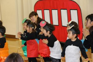 いつも、保育の中でやっていることなので、子供たちは楽しそうに発表会の練習に取り組み、本当に楽しそうで