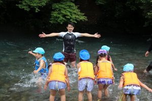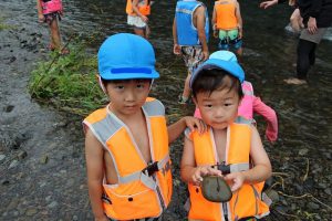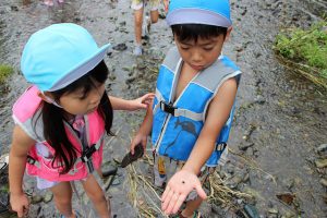年長職員は、前日に水量を確認しに行ったり、園長先生は体を張って危険な場所には立ち入り禁止を教えてくれたり、安全には十分留意しています。
