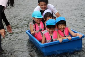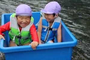 さぁ、四角いたらいボートに乗ってみましょう☆