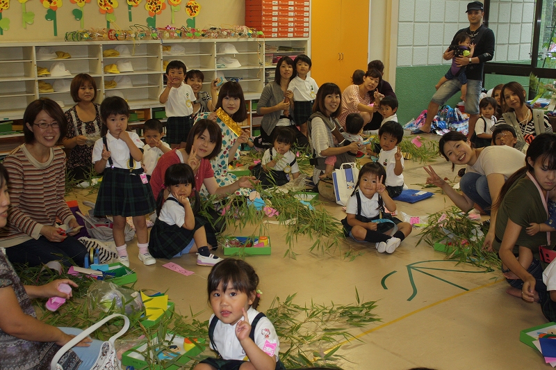 今日午前中はホールで七夕祭りをおこない、七夕のお話やみんなの歌や、楽器の演奏を聞きました。