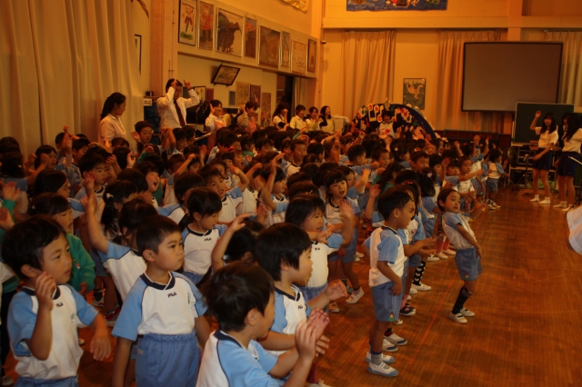 子供達の大好きなアニメのうたの合奏をしてくれ、子供達も曲が流れると元気よく歌ったり、手拍子したりと、子供達も大喜びでした。