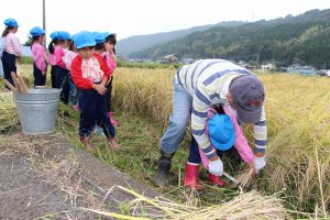 田んぼの半分以上は、子ども達の手で稲を刈ることが出来、今年もとてもよい経験をさせていただきました。