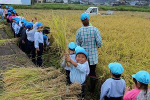年長さんが、5月に田植えの体験をさせていただいた、井出さんの田んぼに