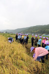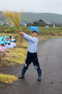 それでも、子ども達は小雨の中、一生懸命、夢中になって稲を刈り、とても楽しそうな様子でした。