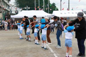 年中さん、みんなで一つの大きな円を作って、どの親子もとっても楽しそうに踊っていました。