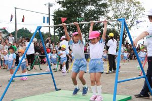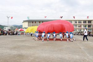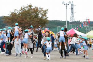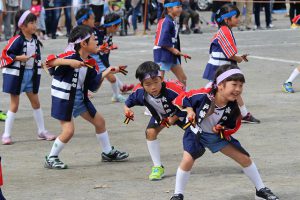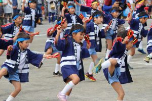 鳴子の音と、子ども達の元気なかけ声が運動場いっぱいに広がり、