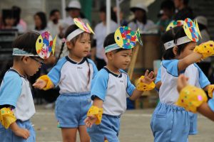 泣いてしまう子もいたけれど、小さな体を大きく揺らし、頑張って踊る年少さんは