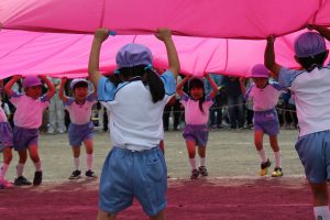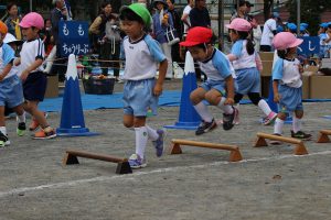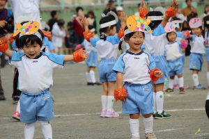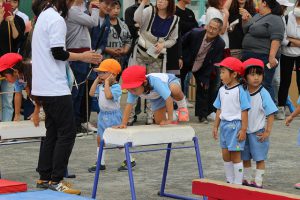 様々な技がとびだし、曲に合わせてとっても楽しそうに演技をする年長さんでした。