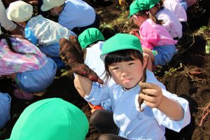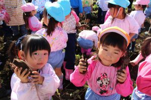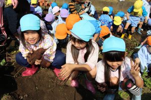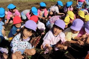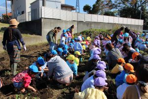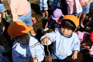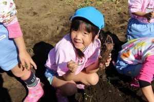 今回は、1歳児のいちご組から年長組までさつまいも掘りに挑戦しました。