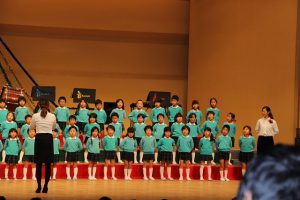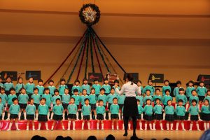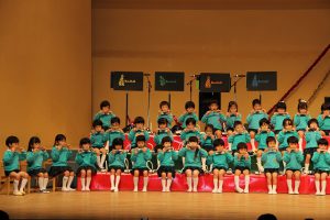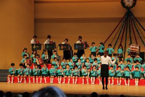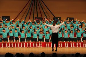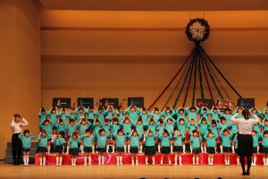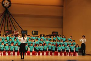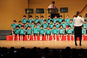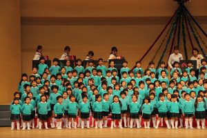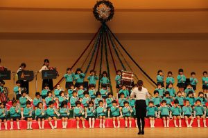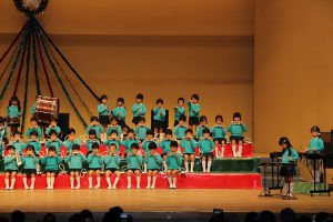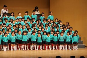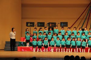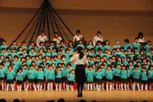 発表会のオープニングは、全園児による「富士山」と「園歌」の合唱です。