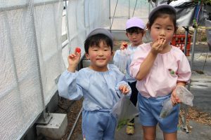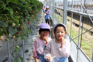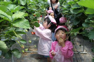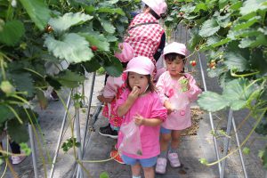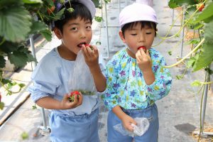 2日目の子ども達も、目の前にあるイチゴに目を輝かせ、とてもうれしそうにイチゴを口いっぱいに頬張っていました。