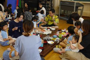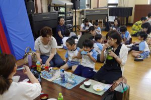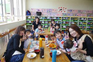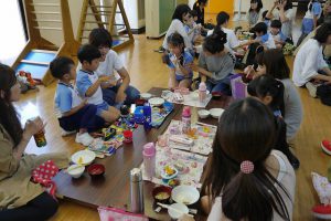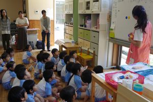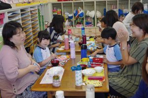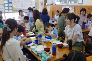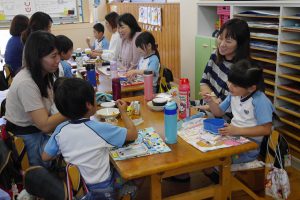 年長さんも、年少・年中さん同様、”めざましあそび”の活動を参観してもらった後、給食の試食をしていただきました。