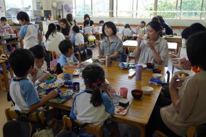 みんなで会話を楽しみながら、とても楽しそうな給食の時間を過ごしていました。