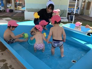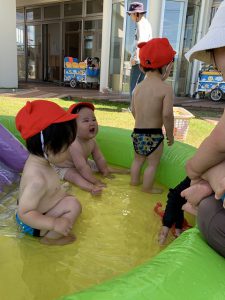 中には、はじめてのプールで泣いてしまう子もいたのですが、これから楽しんでいく中で、プール遊ぶが大好きになってくれるといいなぁと思います。