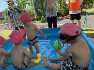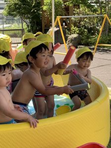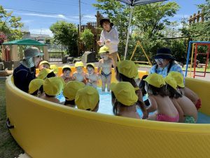 水あそびは、これからの時期にピッタリな遊びであり、子ども達も大好き!