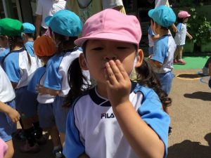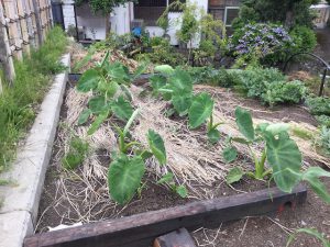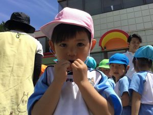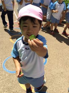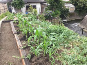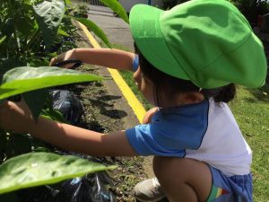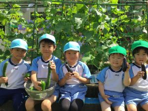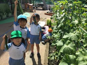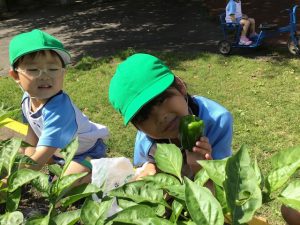 南園舎の園庭花壇で育てている野菜が、すくすくと元気に育ち、