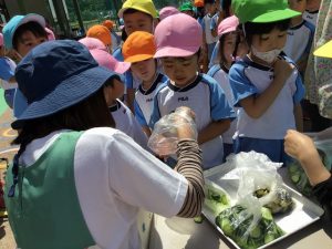 採れた野菜は、給食さんに頼んで、給食のメニューに使ってもらったりもするのですが、