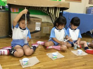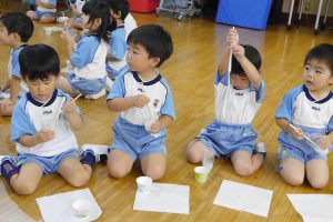スライムを作るとき、「ほう砂」をよく使用しますが、今日年少さんが作っていたのは