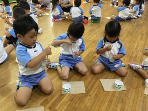 久しぶりの登園で、涙が出てしまう子もいましたが、変わらぬ様子で元気いっぱい登園してきた子友達の姿を見て安心しました。