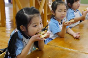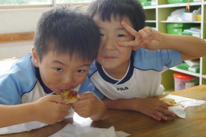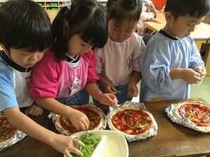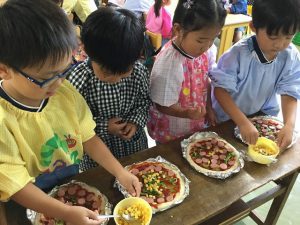 1日目は、年中・年長さんが“夏野菜のピザ作り”