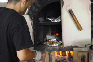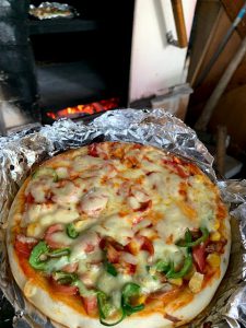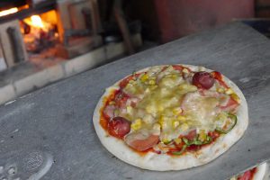 出来上がったピザは、園にあるピザ窯で、園長先生が焼いてくれました。