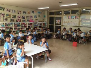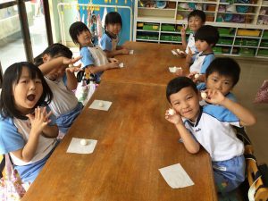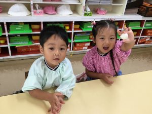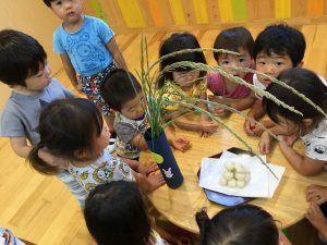 乳児組も幼児組も各クラスで、お月見団子を作りお部屋に飾りました。