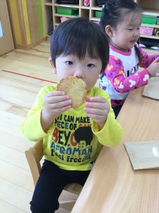焼きたてのいい匂いがするクッキーをとても喜んで嬉しそうに食べていました。
