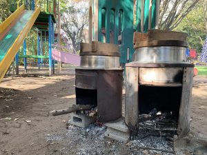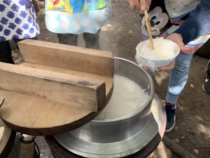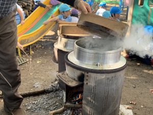 お米は、園庭で理事長先生に窯で炊いていただきました。