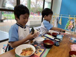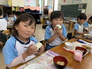 自分たちで作った梅干しだったので、すっぱい顔をしながらも自分で決めた量はしっかり完食。
