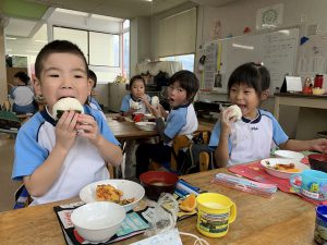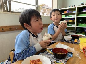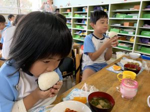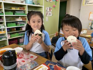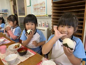 また、園庭でご飯を炊いて、今度は色々な具を入れておにぎり作りを楽しみたいですね!