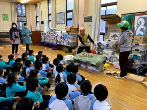 ”つみきのそのさん”と一緒に、年中さんがつみき遊びを楽しみました。
