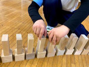 ドミノ遊びをしたり、積み木を積んで遊んだり