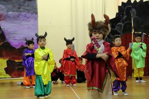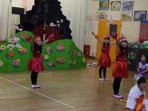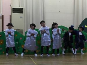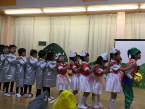 練習の時は恥ずかしくてなかなか大きな声が出なかった子も、自信をもってセリフが言うことができ、とても立派でした。