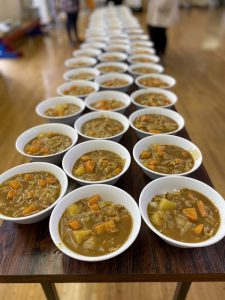 年長児84名が、おかわりしてお腹いっぱい食べられる量のカレーが無事に出来上がりました。