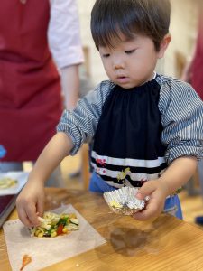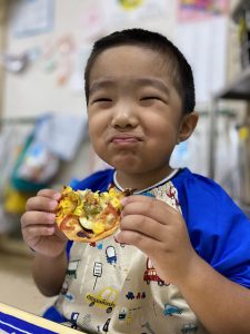 いつもなら…苦手なピーマンだって、自分で作って、幼稚園のみんなで食べるとおいしい(*^^)v