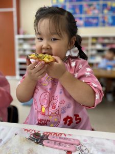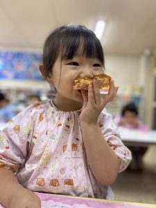 年少の子どもたちみんなが、美味しそうにかぶりつく姿を見て、これこそ食育の醍醐味だなぁと感じました。