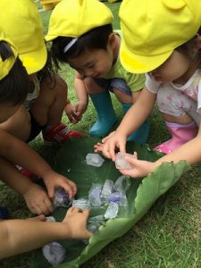 その氷を手に取って「冷たいね~」「きれいだね~」と会話も弾みます。さっき傘だった