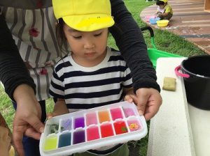 さてこちらは、素敵に色付けをした氷。最近のさくらんぼ組のブームです。
