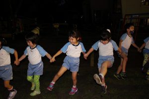 夜の園庭で友達とダンスをすることも初めて。とても楽しんでいました♪