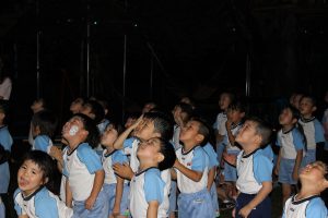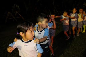 ご飯の後、少し暗くなった園舎の中を探検・・・