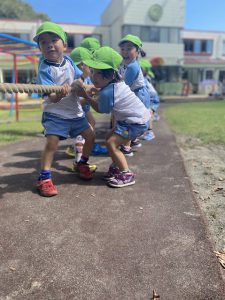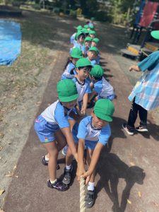 運動会に向けて、体を動かす楽しさを味わえるような環境を準備したり、全体での活動に取り入れたりしています。