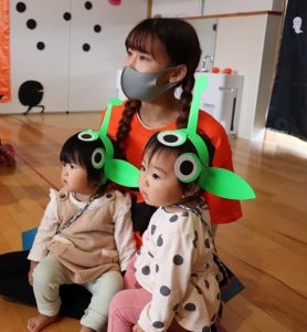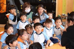 お面をとったら、いつもの優しい先生の顔にほっとし、みんなで楽しみました。