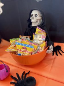 最後にちょっと怖いドクロの入れ物に入っているお菓子をもらいました。