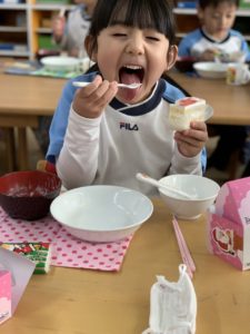 給食のクリスマスケーキは、本当に嬉しかったようです。