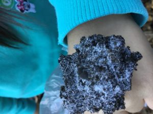 日陰には、霜がおりていて、元気な子どもたちは素手でさわり