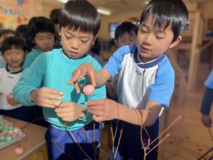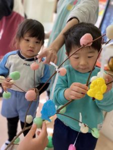 団子がついて華やかになると、子どもたちはとても嬉しそうでした。