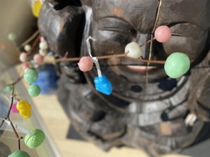 リーチェル幼稚園の2階からにこにこ見守ってくれてる大黒様の前にも繭玉を飾り、大黒様も嬉しそうです♡