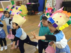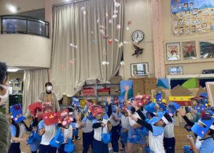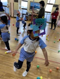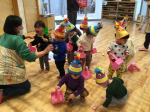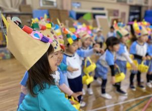その後の楽しいイベント「お菓子まき」では、みんな楽しんでひろえました。