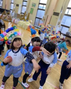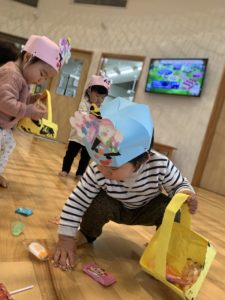 お菓子を拾いながら、年中児にこんな姿が見られました。