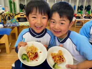 友達と楽しみながら作り、給食の時間がとても楽しい♡